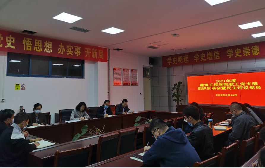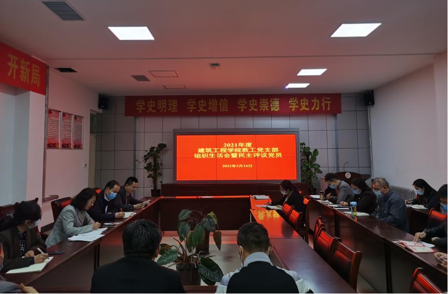 3月16日晚,2021年度BB贝博艾弗森原官方网站教工党支部组织生活会暨民主评议党员大会在汉梁楼BIM会议室召开。根据要求,支部委员会作了认真准备,广泛征求了基层干部群众的意见和建议,进行谈心谈话。本次会议应到26人,实到23人,会议由BB贝博艾弗森原官方网站教工党支部书记刘迪主持。