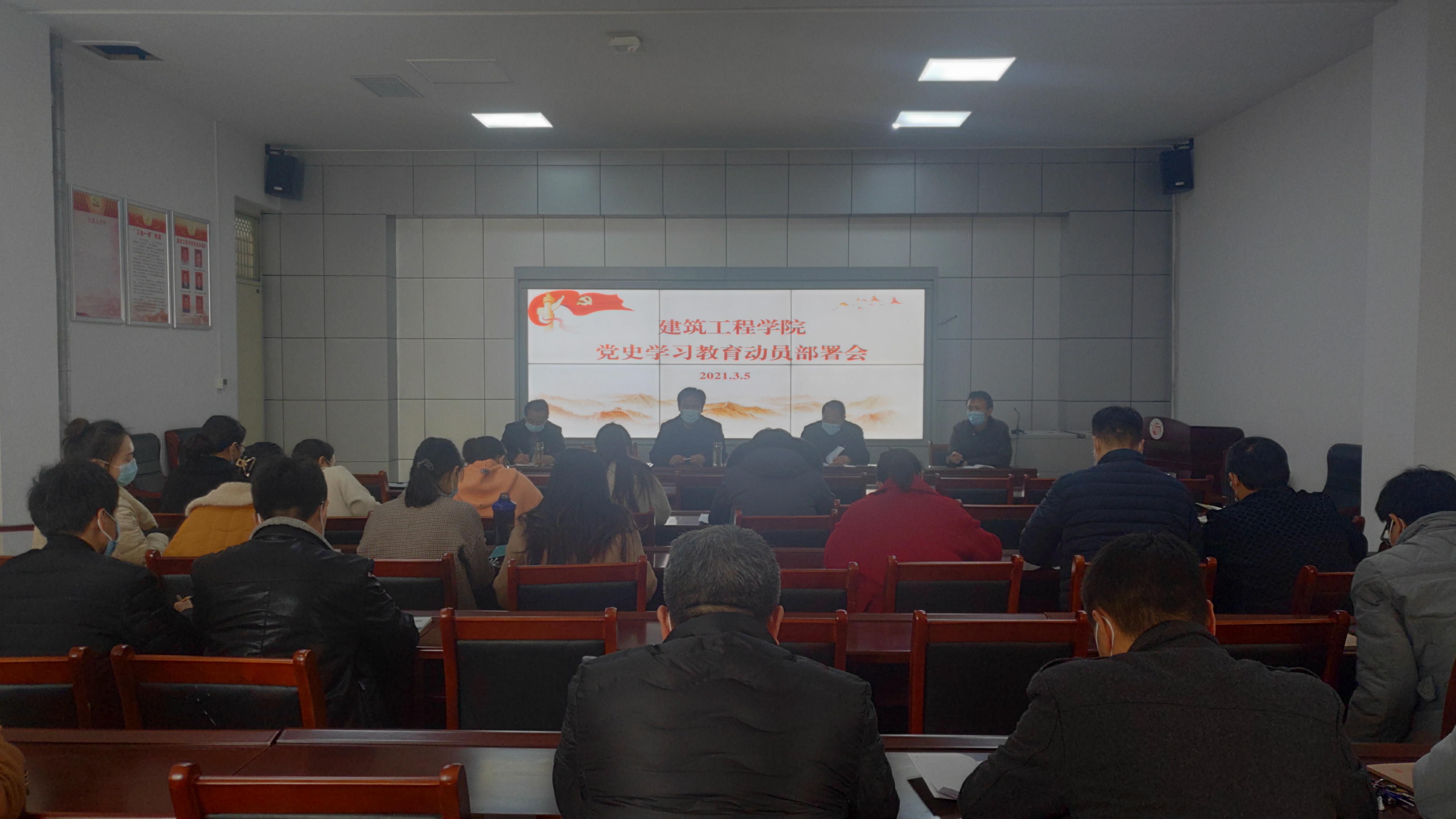 3月5日下午,建筑工学院召开党史学习教育部署会,会上认真学习了习近平总书记在党史学习教育动员大会上的重要讲话,传达了学校党史学习教育动员大会精神,对学院党史学习教育工作进行了部署和安排。