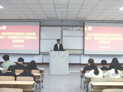 BB贝博艾弗森原官方网站青年志愿者协会第十一届换届选举大会于6月6日在睢阳校区1号教学楼207教室举行。学院团委副书记田晨曦,第十届青协主席团成员,各部门部长,竞选人员以及青协全体干事出席,会议由青年志愿者协会第十届主席赵震主持。