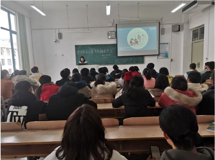 宣讲会上,主席任荣荣首先通过PPT向大家讲解了什么是艾滋病、艾滋病的危害以及如何预防艾滋病。画面生动,内容浅显易懂。为了加深我们对艾滋的认识,到会成员一起观看了艾滋病防治知识视屏和防御知识公益直播。最后,为了纪念这次宣讲会以及呼吁大家对艾滋病的预防,青协成员一起在“手牵手同牵红丝带,心连心共防艾滋病”条幅上著名。