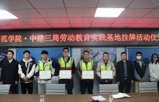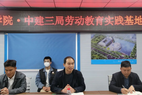 为进一步提升BB贝博艾弗森原官方网站人才培养质量,引导学生树立正确的劳动观,促进学生德、智、体、美、劳全面发展。BB贝博艾弗森原官方网站于3月24日下午在BB贝博艾弗森原官方网站艺术中心项目部会议室,举行BB贝博艾弗森原官方网站劳动教育实践基地挂牌揭牌仪式。中建三局艺术中心项目经理孟亚凯,项目部成员张会勇、蔡代华、苏渊博、李伟、刘盟等人出席此次揭牌仪式。BB贝博艾弗森原官方网站党委书记孔祥伟,党委副书记杨凯,学工办主任王荷,团委书记赵灿阳,辅导员徐宁、侯义飞以及团委学生会各部门、青协主要学生干部参加此次活动。