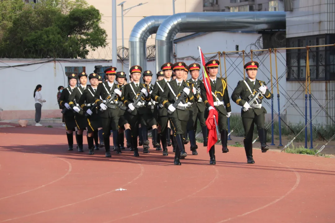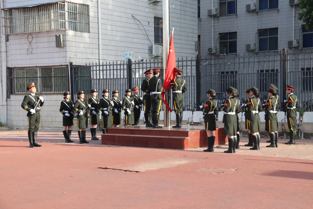 运动结束后,升旗仪式正式开始。在全体师生的注目下,国旗护卫队成员迈着坚毅的步伐,将国旗护送至升旗台,伴随着《义勇军进行曲》,五星红旗冉冉升起。