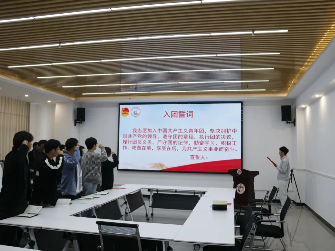 上期学员代表张益菡分享了自己在培训中的体验与心得,表达了自己在培训中的收获。接着,本期学员代表钟施博进行发言,他表示会珍惜此次培训机会,并在今后的学习、生活和工作中不断完善自己,勇担重任,书写青春华章。仪式最后,由张杰带领大家重温入团誓词。